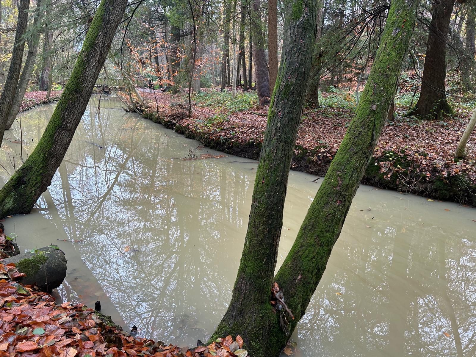 Auffällige Wasserverfärbung im Judenbruch im Wassenberger Wald